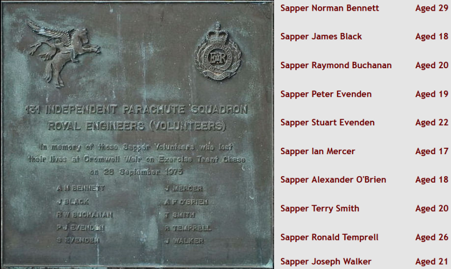 The annual Cromwell Lock Memorial Service was held on Sunday 23rd September to remember the 10 sappers from 300 Tp, 131 Indep Para Sqn RE (V) who lost their lives whilst taking part in Ex Trent Chase on the 28th September 1975.