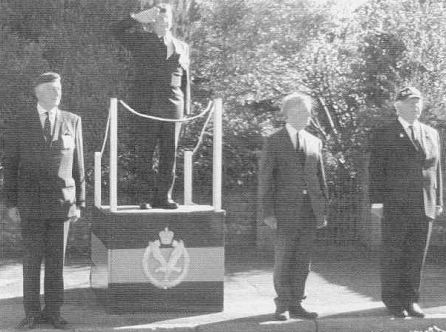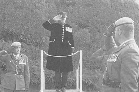 The saluting dais with Lt Col Nichols, Lt Col John Lee, Sir Donald Spiers and Peter Yeates.