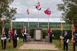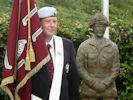 The service followed the normal format, preceded by the landing of a Scout helicopter from the Historic Army Aircraft Flight Trust piloted by Major Jim Trayhurn of the Army Air Corps Reserves. Your President laid a wreath on behalf of all members of the AEA and John Ferry carried the AEA Standard amongst others, not the easiest of jobs in the strong wind that was blowing, but the rain which was threatened luckily held off. Members from the Birmingham Branch and individuals represented the AEA. The memorial has been refurbished in recent times and the two statues had been damaged earlier in the year but have been repaired and the memorial looked pristine for the service.