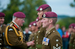 All detachments were inspected in the Recreation Field and then, led by the piper, marched down to the village where the inspecting officer, Lt Col Nick Nichols MBE, President of the Glider Pilot Regimental Association took the salute.
