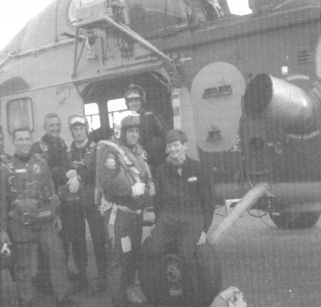 Dave Rutter, Alec Black & Pete McCabe with Wessex aircrew, RAF Brawdy July 69